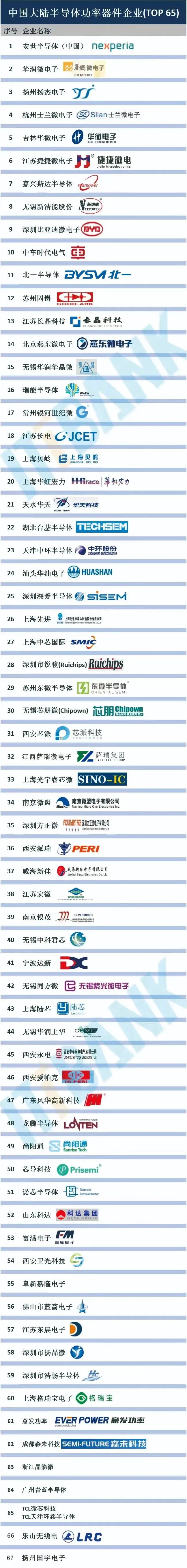 中国大陆半导体功率器件企业